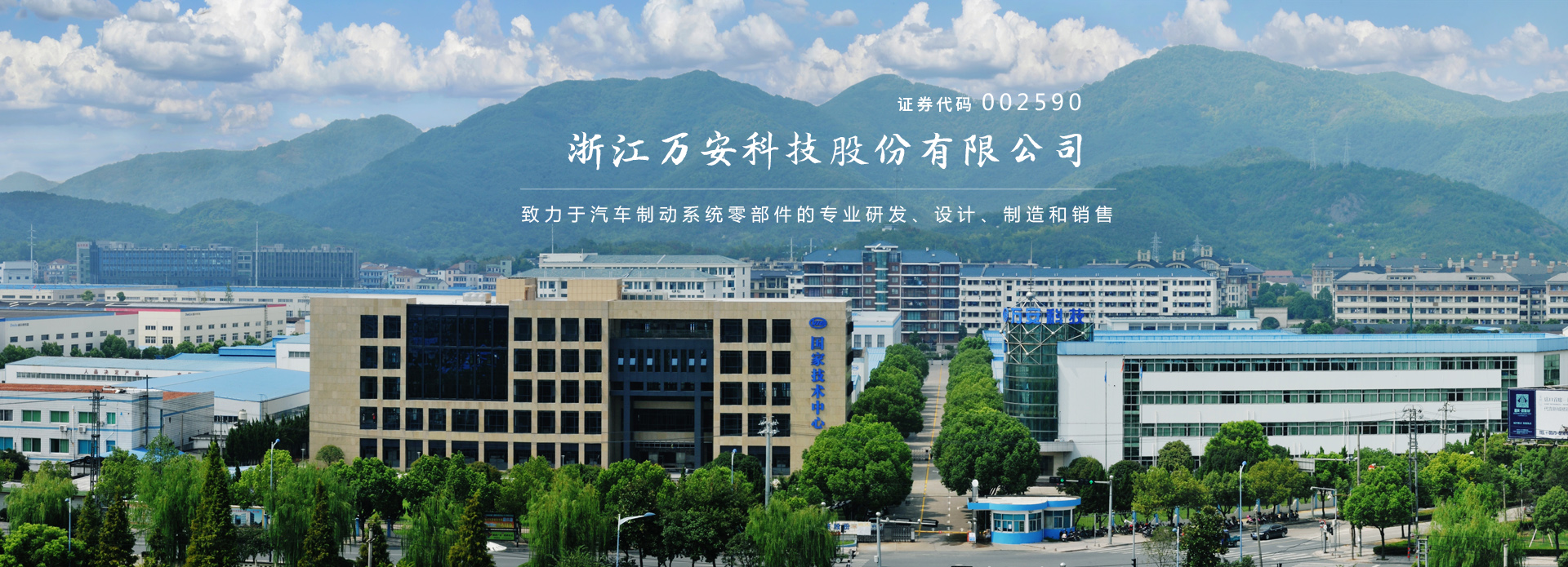 浙江萬安科技股份有限公司致力于汽車制動系統零部件的專業研發(fā)、設計、制造和銷售,是第一批全國企事業知識產權示范單位、國家級重點高新技術企業,曾獲中國機械工業最具影響力品牌,連續(xù)兩屆擔任中國汽車工業協會制動器委員會理事長單位。公司擁有國家認定企業技術中心、國家認可實驗室和國家級博士后科研工作站。現已申請專利1000余項,其中發(fā)明專利及軟件著作權300多項,并主持和參與起草了90多項國家和行業標準。2011年6月10日,公司在深交所成功上市(證券簡稱:萬安科技,證券代碼:002590)。